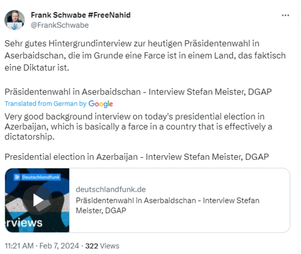 Azərbaycan Respublikasında prezident seçkiləri keçirilir. Bu siyasi kampaniya milli dövlətçilik tarixində Qarabağ işğaldan azad edildikdən sonra ilk dəfə reallaşdığı üçün tarixi də adlanır.