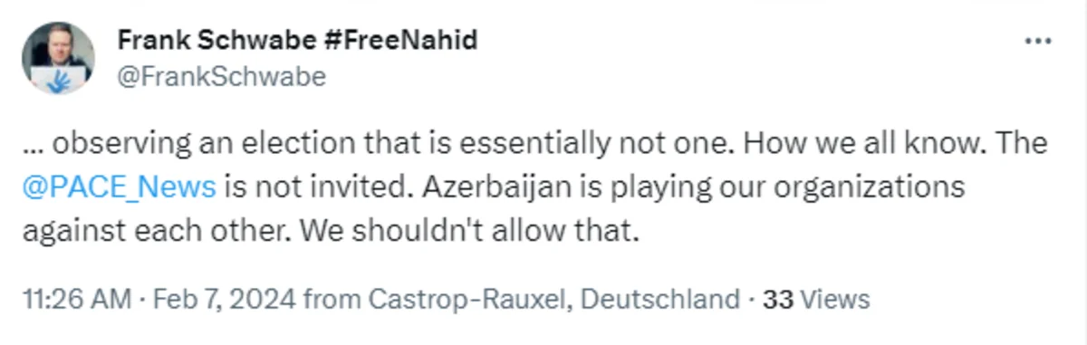 AŞPA-da Azərbaycan nümayəndə heyətinin səlahiyyətlərinin məhdudlaşdırılması ilə bağlı müzakirələrin təşəbbüskarı olan almaniyalı deputat Frank Şvabenin çıxışını yada salmaq kifayət edər.