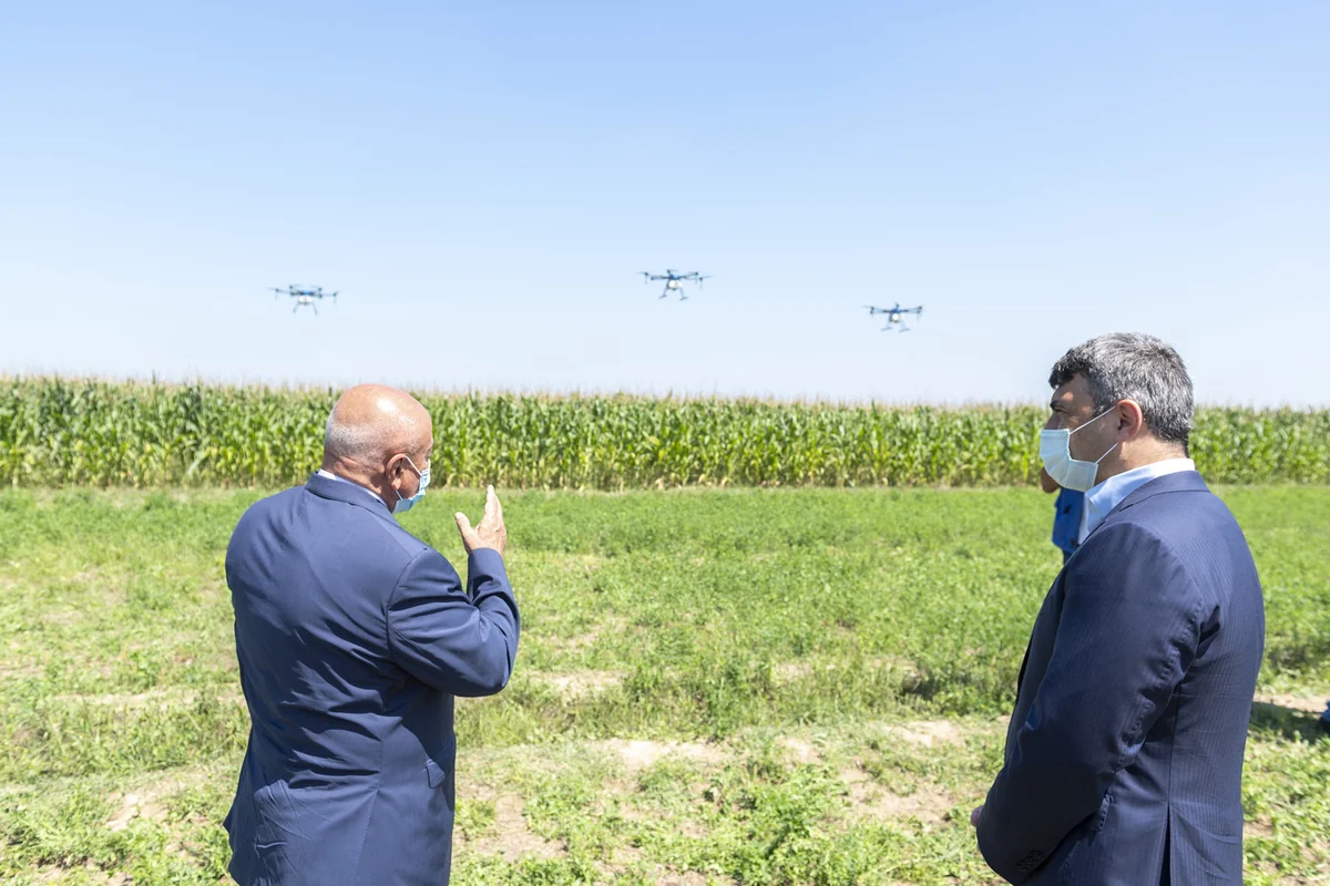 Jurnalistlərə açıqlama verən Aqrar Elm və İnnovasiya Mərkəzinin direktoru İmran Cümşüdov bildirib ki, Azərbaycanda aqrar sahədə innovasiyaların tətbiqi genişlənir: "Hazırda biz Azərbaycanda ilk dəfə qarğıdalı sahələrində yaşıl qurda qarşı dronlar vasitəsilə havadan dərmanlama aparırıq. Qarğıdalı bitkisinin hazırkı vegetasiya dövründə boy hündürlüyünün yüksək olması dərmanlama prosesinin hansısa texnika və aqreqat vasitəsilə dərmanlanmasına imkan vermir. Dünya praktikasında belə hallarda dərmanlama havadan dronlar vasitəsilə həyata keçirilir. Hazırda biz də Azərbaycanda təkrar qarğıdalı əkini sahələrində bu prosesi gerçəkləşdiririk. Gələcəkdə fermerlərin təsərrüfatlarda müasir innovasiya və texnologiyalardan istifadəsi daha da genişləndiriləcək".
