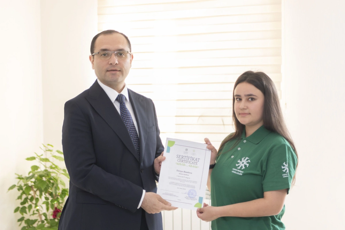 Daha sonra nazir Aqrar İnkişaf Könüllüləri ilə görüşüb, aktiv fəaliyyəti ilə fərqlənən bir qrup könüllüyə sertifikatlar təqdim edib.