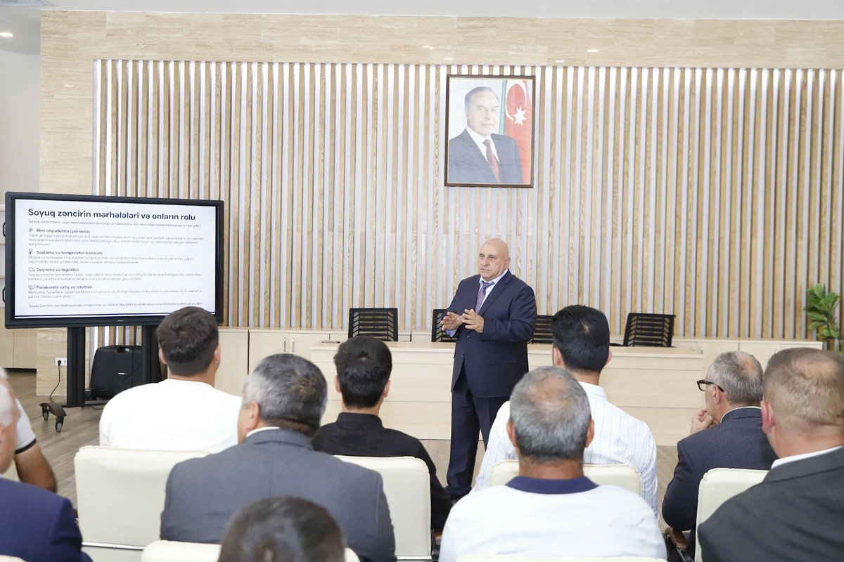 Tədbir çərçivəsində fermerlər üçün “Meyvə-tərəvəzlərin uzun müddətli saxlanma texnologiyaları və soyuq zəncirin tətbiqi” mövzusunda növbəti təlim keçirilib.