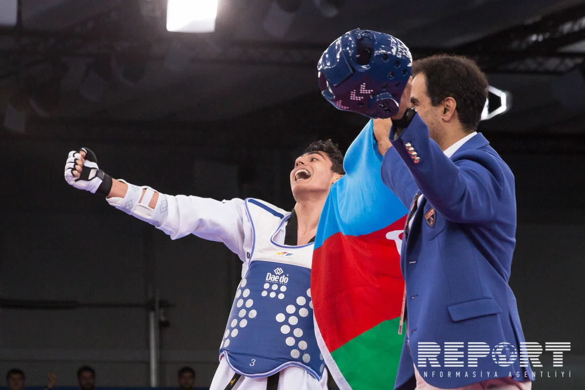 "Report" xəbər verir ki, Bakıda I Avropa Oyunları çərçivəsində kişilər arasında 68 kiloqram çəki dərəcəsində taekvondo yarışlarında mübarizə aparan Ayxan Tağızadə finala çıxıb.