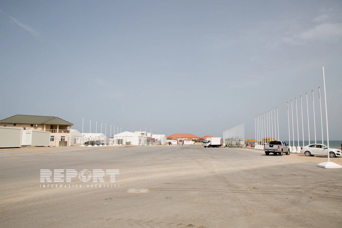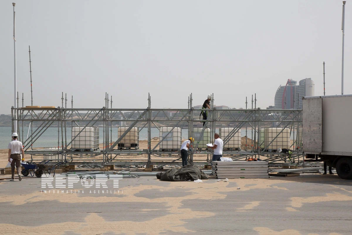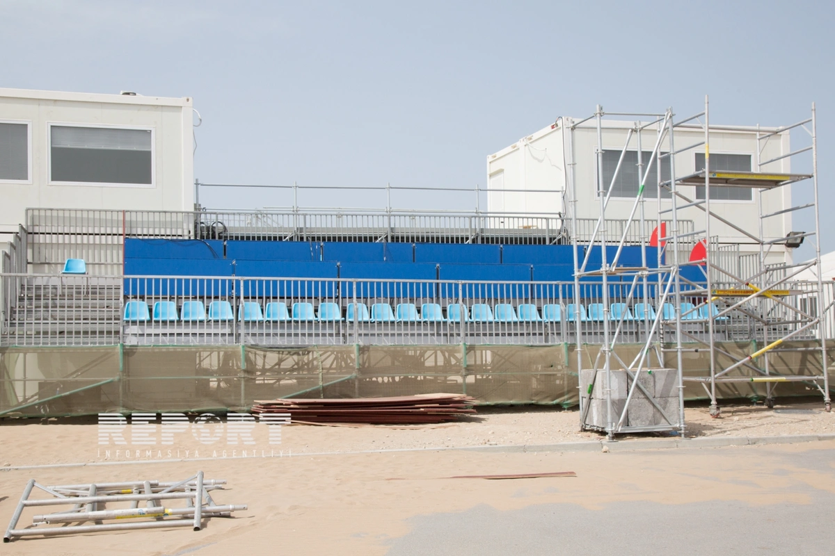 İdman obyekti haqqında məlumat verən menecer Lukas Mayts hazırda ərazidə son tamamlanma işlərinin aparıldığını bildirib. Onun sözlərinə görə, triatlon yarışlarında 36 ölkədən ümumilikdə 120 idmançı iştirak edəcək: "Demək olar ki, idman məkanı yarışları qəbul etməyə hazırdır. Oyunlara 2 həftə vaxt qalıb və bu bizim üçün ən ağır vaxt hesab olunur. Çünki sona yaxınlaşdıqca işlər daha da gərginləşir. Buna baxmayaraq, yaxın bir neçə gündə çimərlik yarışları üçün tam hazır vəziyyətə gətiriləcək. Çimərlikdə qum və suyun daşlardan təmizlənməsi prosesi də yekunlaşır. 60 qadın və 60 kişi triatlonçu olacaq".