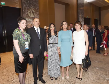 Qəbul birinci Avropa Oyunlarının açılışından bəhs edən videoçarxın nümayişi ilə başladı.