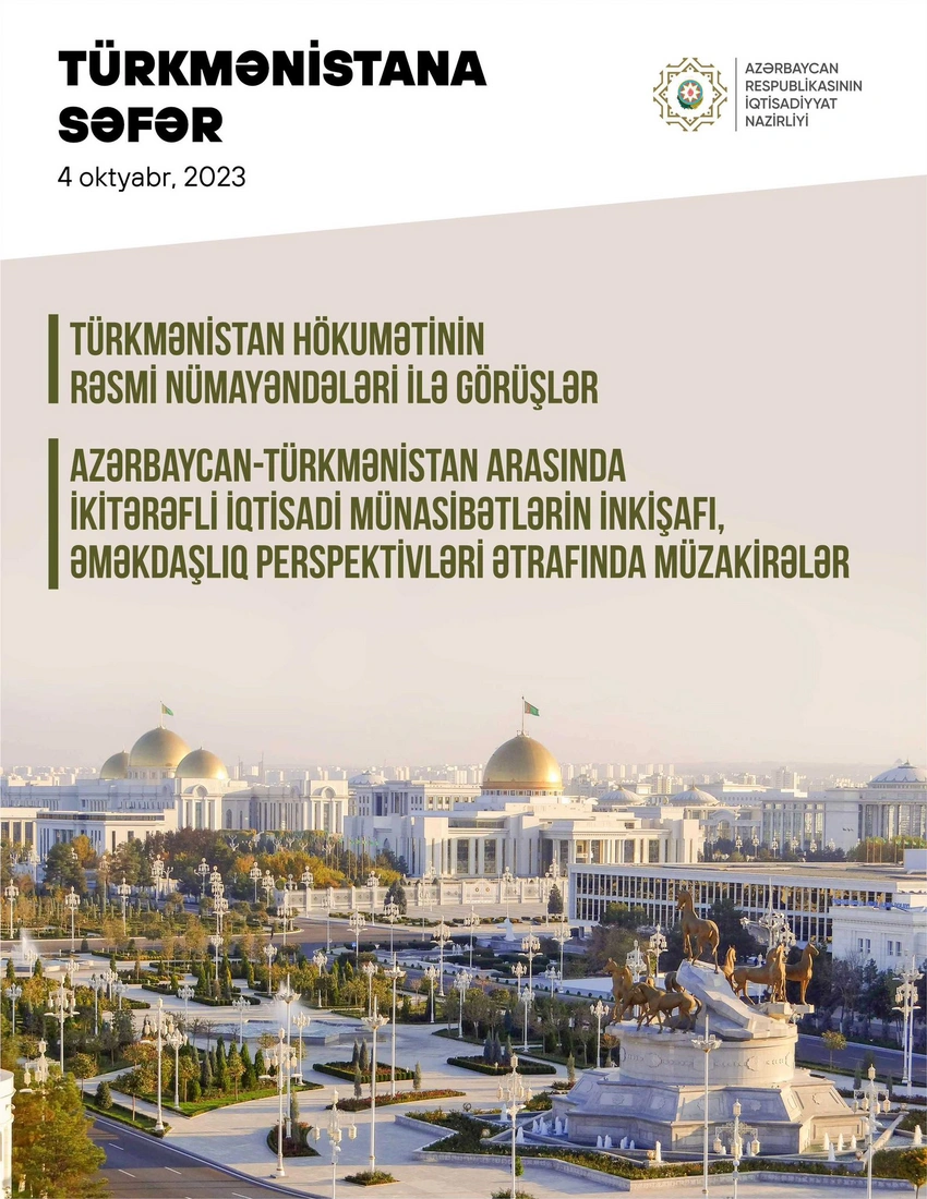 Azərbaycanla Türkmənistan arasında iqtisadi münasibətlərin inkişafı, əməkdaşlıq perspektivləri ətrafında müzakirələr aparılacaq.