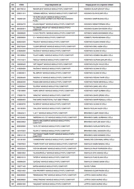 Azərbaycandan çıxışına icazə verilməyən şəxslər arasında xarici vətəndaşlar, eləcə də bir sıra məşhur şəxslər, məsələn, "Bakı Futbol Klubu" MMC-nin prezidenti Zeynal Məmmədov (məşhur iş adamı Hafiz Məmmədovun qardaşı), "Çudo Peçka" MMC-nin nümayəndəsi Fuad Məmmədov, "Gəncə Şərab" ASC-nin rəhbəri Mirməhəmməd Məmmədov və s. şəxslər var.