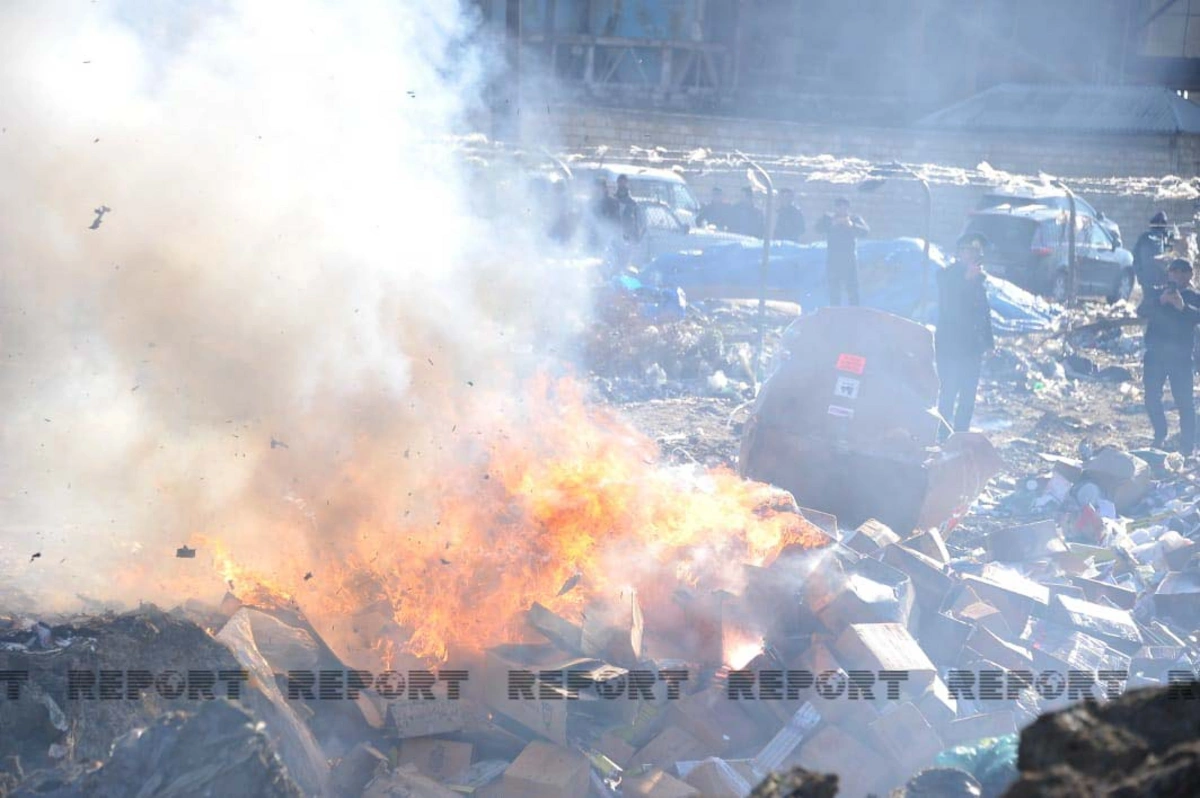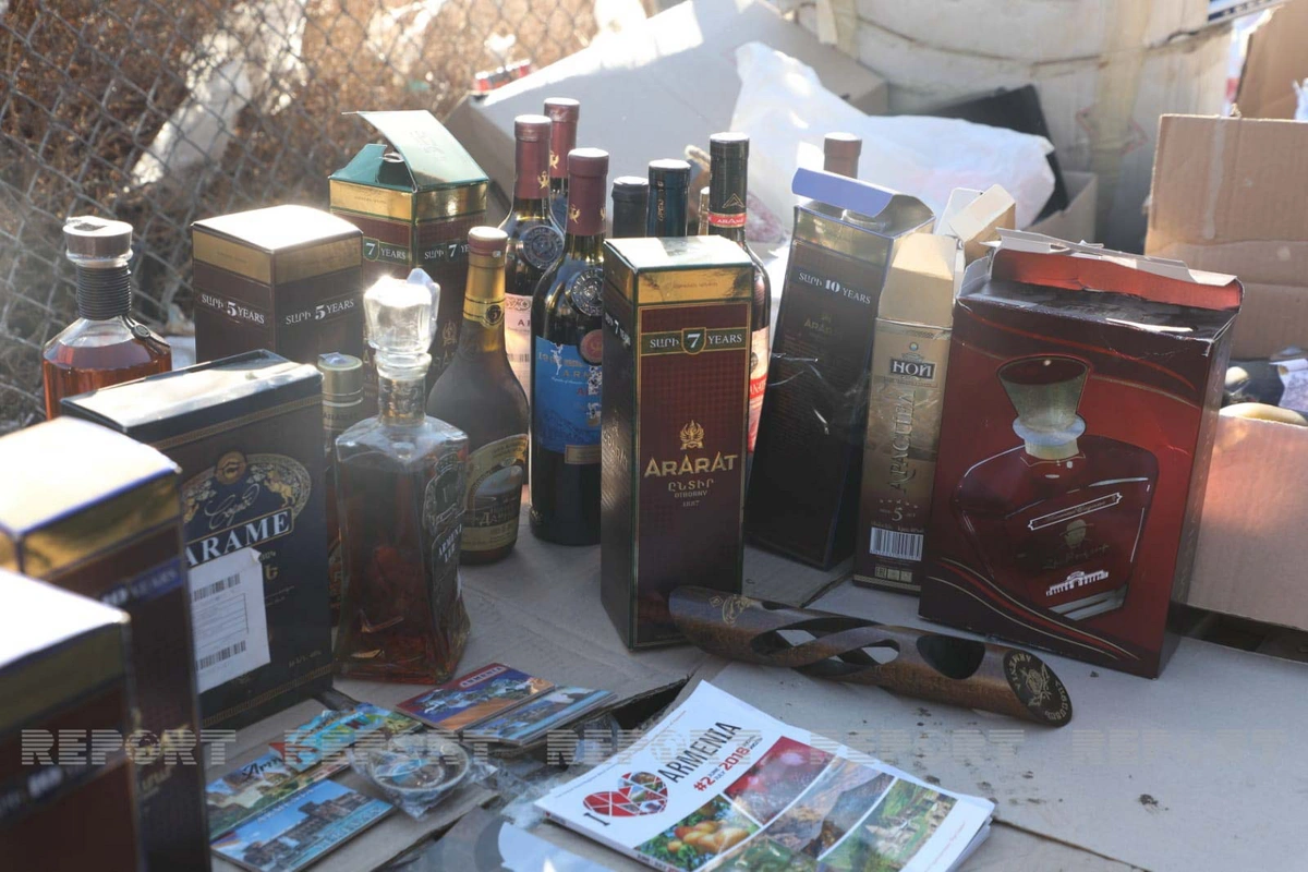 Eyni zamanda, məhv edilən mallar arasında Ermənistan istehsalı olan istifadəyə yararsız 37 ədəd suvenirlər, 32 qutu siqaret və 51,7 litr müxtəlif spirtli içkilər də olub".