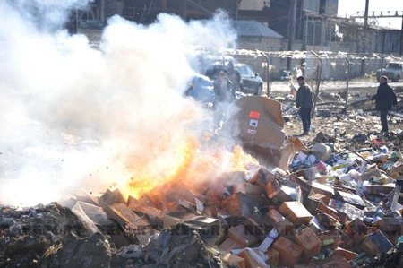 DGK Ermənistan istehsalı olan istifadəyə yararsız malları məhv etdi