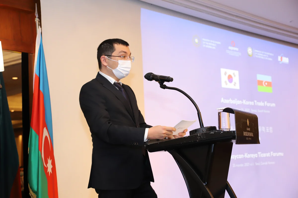 Tədbirdə çıxış edən nazir müavini Elnur Əliyev sahibkarlığın stimullaşdırılması və rəqabət qabiliyyətinin artırılması üçün görülən işlər, pandemiya dövründə kiçik və orta biznesə (KOB) dəstək mexanizmləri, maliyyə resurslarına sadələşdirilmiş çıxışın təmin olunması və digər tədbirlər nəticəsində qeyri-neft ixracında əldə olunmuş uğurları diqqətə çatdırıb. Belə ki, pandemiyanın təsirlərinə baxmayaraq, 2021-ci ilin ilk 10 ayı ərzində qeyri-neft sektoru 5.9%, ixrac 37.7%, qeyri-neft ixracı isə müstəqilliyimizin bərpasından indiyədək olan dövrdə ən yüksək həddə - 42% artıb. Torpaqlarımızın işğaldan azad edilməsi ilə yaranan yeni reallıqları və innovativ təşəbbüslərin həyata keçirilməsi imkanlarını vurğulayan nazir müavini bu ərazilərdə aparılan genişmiqyaslı bərpa-quruculuq işləri barədə məlumat verib, koreyalı investorları fəal əməkdaşlığa dəvət edib.
