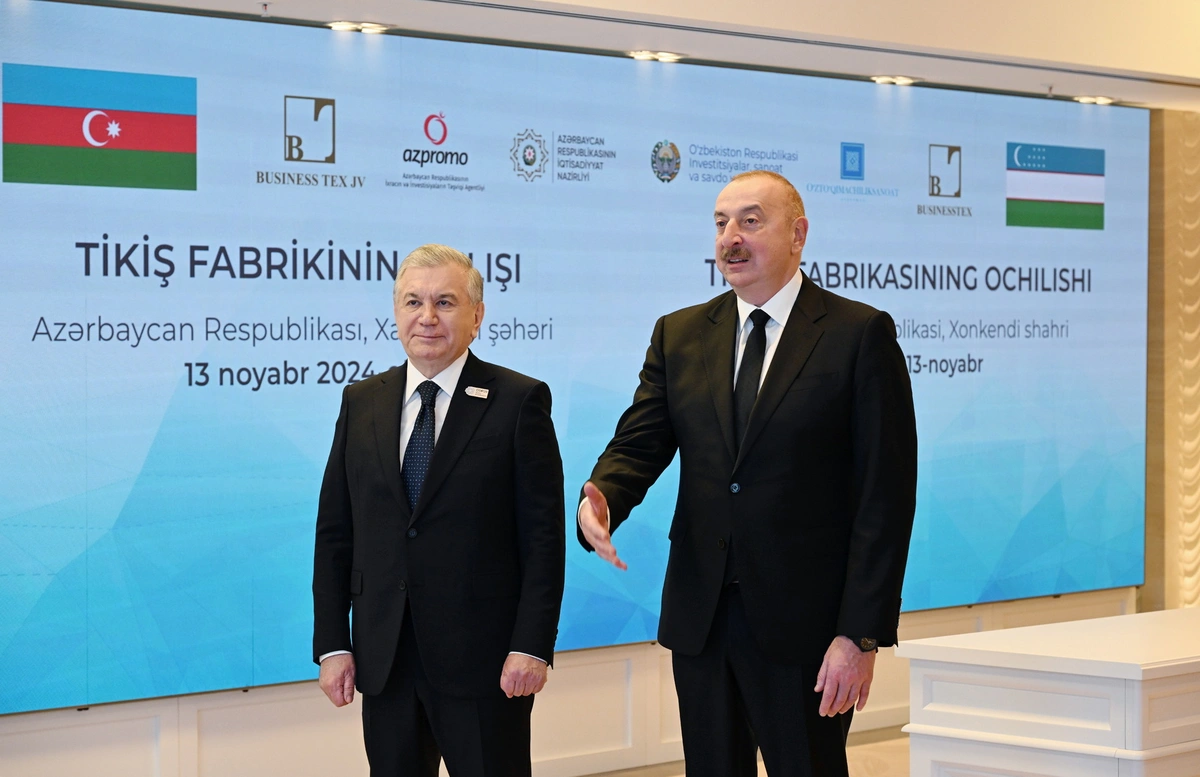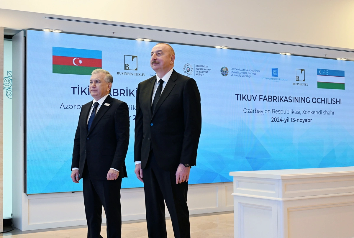 Bu fabrik birliyimizin daha bir rəmzidir. Mən qardaşım Şavkat Miromonoviçə minnətdarlığımı bildirirəm ki, bizim özbək dostlarımız qısa müddətdə Xankəndidə minlərlə insanın çalışacağı və təbii ki, mütləq əksəriyyəti qadınlardan ibarət gözəl müəssisənin yaradılmasına kömək göstərdilər. Bu, məşğulluqdur, bu, istehsaldır, bu, Qarabağın inkişafıdır. Özbək qardaşlarımız isə yenə burada birincidirlər. Füzulidə məktəb tikməkdə bizə ilk yardımçı oldular, işğaldan azad edilmiş ərazilərdə belə böyük bir müəssisə yaratmaqda bizə ilk köməyi göstərdilər.