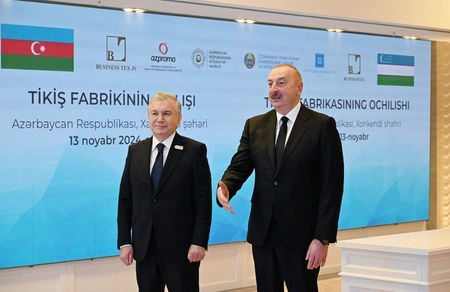 "Report" xəbər verir ki, sonra Azərbaycan və Özbəkistan prezidentlərinin iştirakı ilə Xankəndi şəhərində tikiş fabrikinin videobağlantı vasitəsi ilə açılış mərasimi olub.