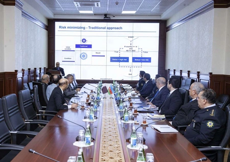 Görüş çərçivəsində risklərin idarə edilməsi mövzusunda Azərbaycan gömrüyünün təcrübəsinə dair təqdimat nümayiş etdirilib.