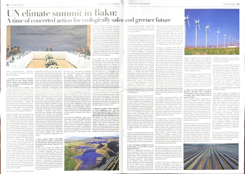 Azərbaycanın Niderlanddakı səfiri Rəhman Mustafayev Niderlandın ingilisdilli “Holland Times” qəzetinə müsahibəsində bu ilin noyabarında Azərbaycanın paytaxtı Bakıda keçiriləcək BMT-nin İqlim Dəyişmələri üzrə Çərçivə Konvensiyasının Tərəflər Konfransının 29-cu sessiyasının (COP29) gündəliyi və əsas məqsədləri barədə danışıb.