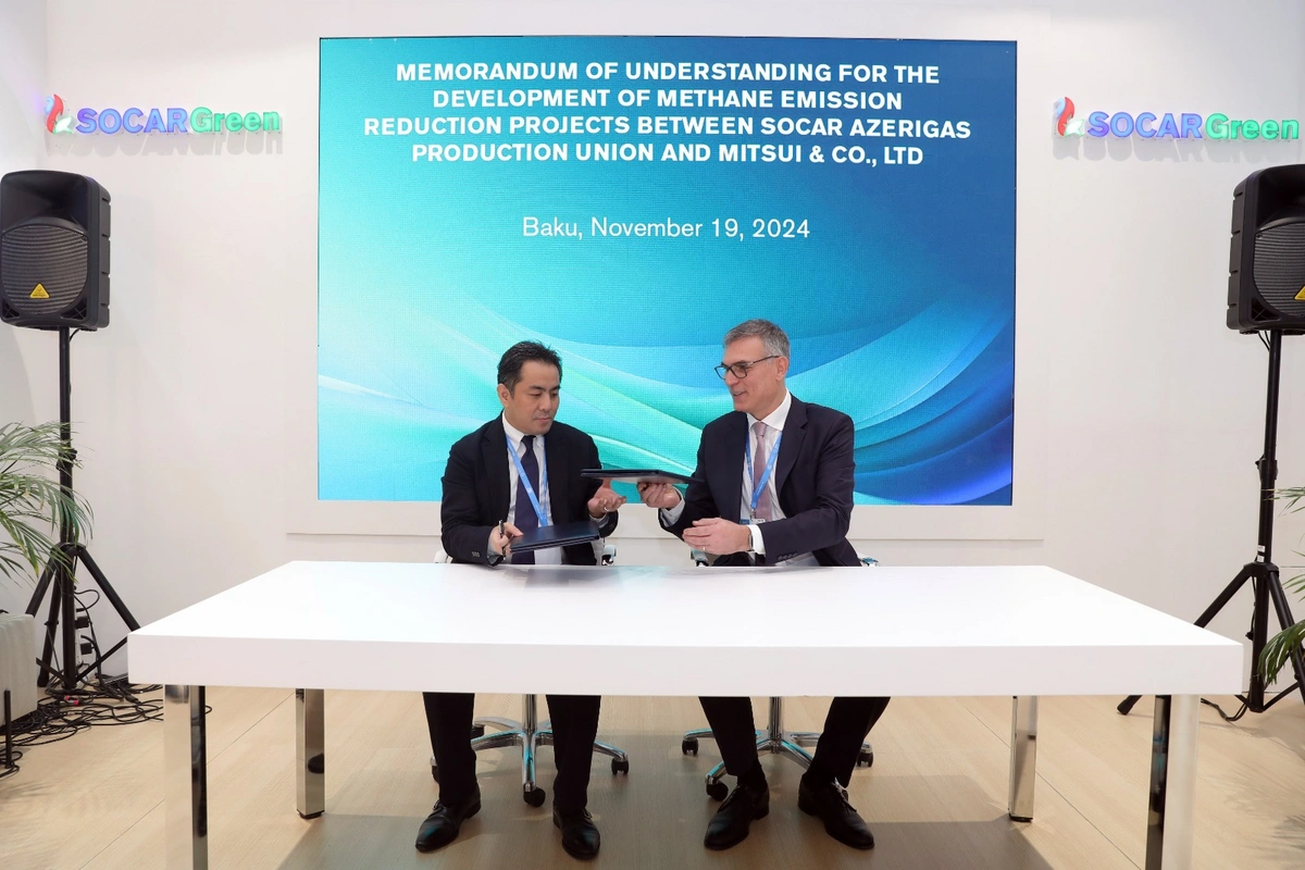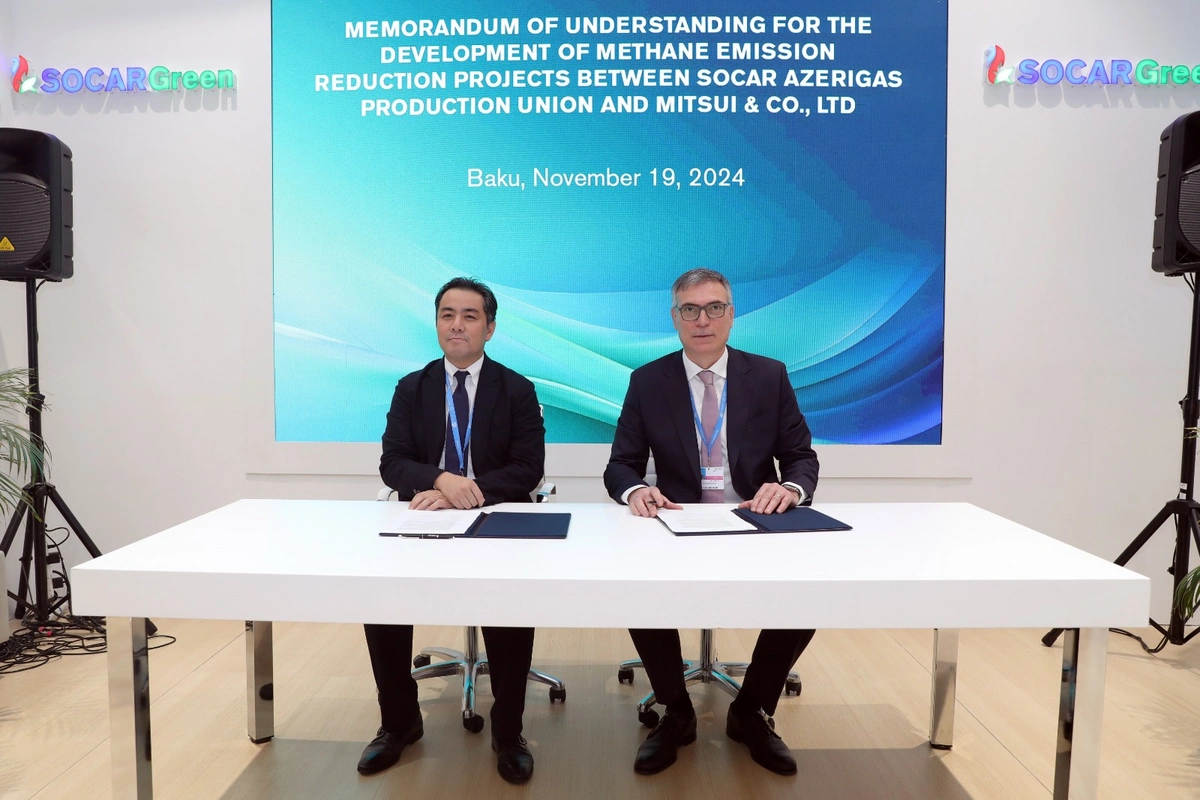 COP29 çərçivəsində Azərbaycan Dövlət Neft Şirkətinin (SOCAR) “Azəriqaz” İstehsalat Birliyi və Yaponiyanın “Mitsui & Co., Ltd.” şirkəti arasında metan emissiyasının azaldılması layihələrinin birgə tədqiq edilməsi məqsədilə Anlaşma Memorandumu imzalanıb.
