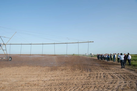 Tədbirin davamı olaraq Saatlı rayonunda “MKT İK İnnovasiya Mərkəzində” 2008 hektar pivot suvarma sisteminə baxış keçirilib və qonaqlara layihə barədə ətraflı məlumat verilib. Bildirilib ki, çiləmə suvarma sisteminə əsaslanan Pivot layihə ənənəvi suvarma ilə müqayisədə bir sıra üstünlüklərə malikdir. Bu sistem su sərfiyyatının 2 dəfə azalmasını, qrunt su səviyyəsinin normada saxlanmasını, əkin sahələrində göllənmə yaranmamasını və bitkilərin eyni miqdarda su ilə təmin olunmasını təmin edir. Pivot sistemlərin yaradılması suya həssas sektorlarda iqlim dəyişmələrinə uyğunlaşma vasitəsi kimi ən geniş yayılmış üsuldur.