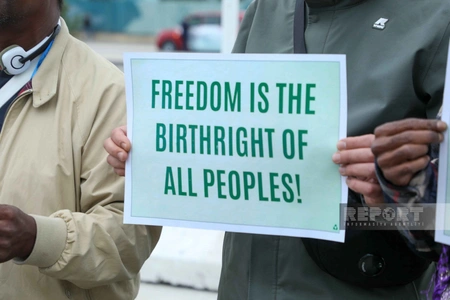 "Report" xəbər verir ki, aksiya iştirakçıları kolonializm qurbanı olan Afrika ölkələrinin təmsilçiləridir.