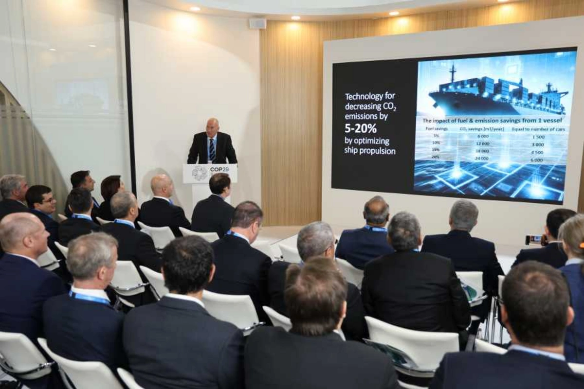 QTAGG-ın Baş kommersiya direktoru Per Österberq “Yeni dekarbonizasiya texnologiyaları: EcoPilot” mövzusunda çıxış edib. Per Österberq ASCO-nun öz gəmilərində “EcoPilot” sistemini quraşdırmasından da danışaraq, bunu innovativ və "yaşıl texnologiya"lara keçid istiqamətində əhəmiyyətli addım kimi dəyərləndirib.