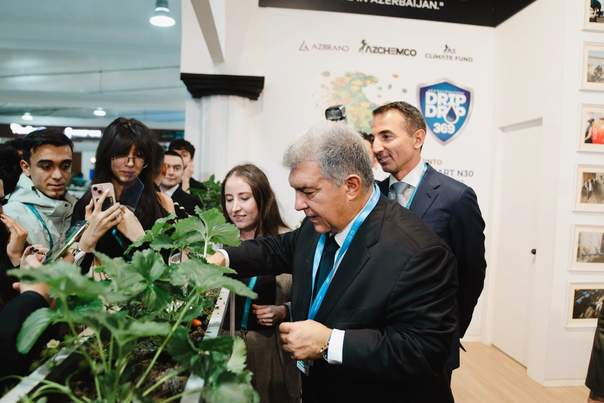 BMT-nin İqlim Dəyişmələri üzrə Çərçivə Konvensiyasının Tərəflər Konfransının 29-cu sessiyasında (COP29) iştirak məqsədi ilə Bakıya gələn İspaniyanın "Barselona" klubunun prezidenti Xuan Laporta Azərbaycanda gübrələrin və bitkilərin mühafizə vasitələrinin ilk yerli istehsalçısı olan "AZCHEMCO" şirkətinin pavilyonun ziyarət edib.