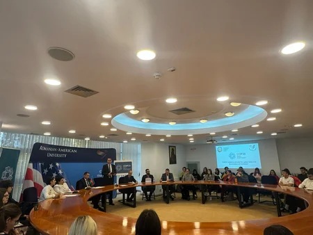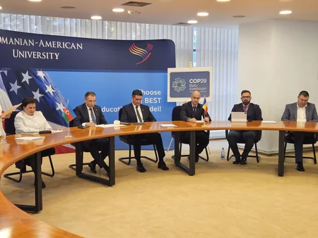 Rumıniyanın aparıcı universitetlərindən biri, beş min tələbənin təhsil aldığı Rumın-Amerikan Universitetində “COP29: Azərbaycanın Prezidentliyində yaşıl gələcək naminə təşəbbüslər və çağırışlar” adlı dəyirmi masa keçirilib.