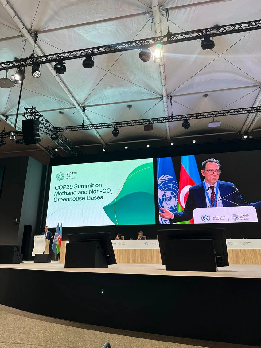 “Report” SOCAR-a istinadən xəbər verir ki, SOCAR-ın vitse-prezidenti Əfqan İsayev BMT-nin İqlim Dəyişmələri üzrə Çərçivə Konvensiyasının Tərəflər Konfransının 29-cu sessiyası (COP29) çərçivəsində “Metan və qeyri-CO2 istixana qazları” mövzusunda Sammitin plenar iclasında çıxışı zamanı bildirib.