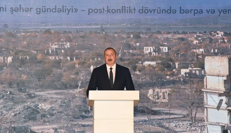 Beləliklə, biz artıq burada - Ağdamda bir neçə evin tikintisinə başlamışıq. Mən dünən burada idim və 3 kəndin - Xıdırlı, Kəngərli və Sarıcalının təməlqoyma mərasimlərində iştirak etmişdim. Maksimum iki ildən sonra bu kəndlərdə bir neçə min insan yaşayacaqdır. Ağdam şəhərində biz demək olar ki, min yerlik məktəb tikirik. Bu məktəb də ola bilsin bu il, ya da gələn il hazır olacaq. Xəstəxana və bir neçə yaşayış binası tikilir. Bu, sadəcə, Ağdamdır. Eyni işlər Füzulidə, Qubadlıda, Zəngilanda da görülür. İki ay bundan əvvəl qayıtdığımız Laçın şəhərini növbəti ilin sonuna kimi bərpa etməyi planlaşdırırıq. Çünki dediyim kimi, orada qeyri-qanuni məskunlaşma var idi. Heç də bütün binalar sökülməmişdir. Biz artıq bir qrup mütəxəssisi oraya göndərmişik. Beləliklə, biz Qarabağı və Zəngəzuru yenidən quracağıq. Buna heç bir şübhəmiz yoxdur. Necə bahalı olursa olsun, bunu edəcəyik. Bu, bizim milli ideyamızdır. Əvvəllər bizim milli ideya torpaqlarımıza qayıtmaqdan, ədaləti və ərazi bütövlüyümüzü bərpa etməkdən ibarət idi və bütün Azərbaycan xalqı bu ideya ətrafında birləşmişdi, özünü buna hazırlamışdı. Canlarını qurban vermiş gənc nəsil, - müharibə zamanı demək olar ki, üç min nəfəri qurban verdik, - və Qələbəmizi qeyd edən minlərlə insan, bu, həqiqətən də müasir Azərbaycandır, bu, yeni Azərbaycandır. İndi artıq işğal damğasından azad olunmuş Azərbaycan yüksəlməkdədir və mən əminəm ki, Azərbaycan ən uğurlu ölkələrdən biri olacaq və söhbət təkcə bizim regiondan getmir.