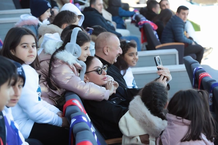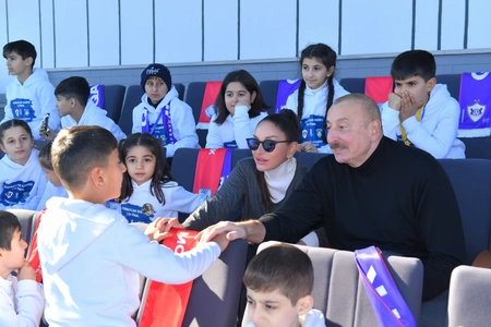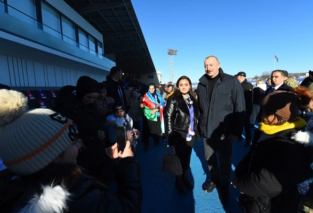 Azərbaycan Prezidenti İlham Əliyev və birinci xanım Mehriban Əliyeva Xankəndi stadionuna gəliblər.