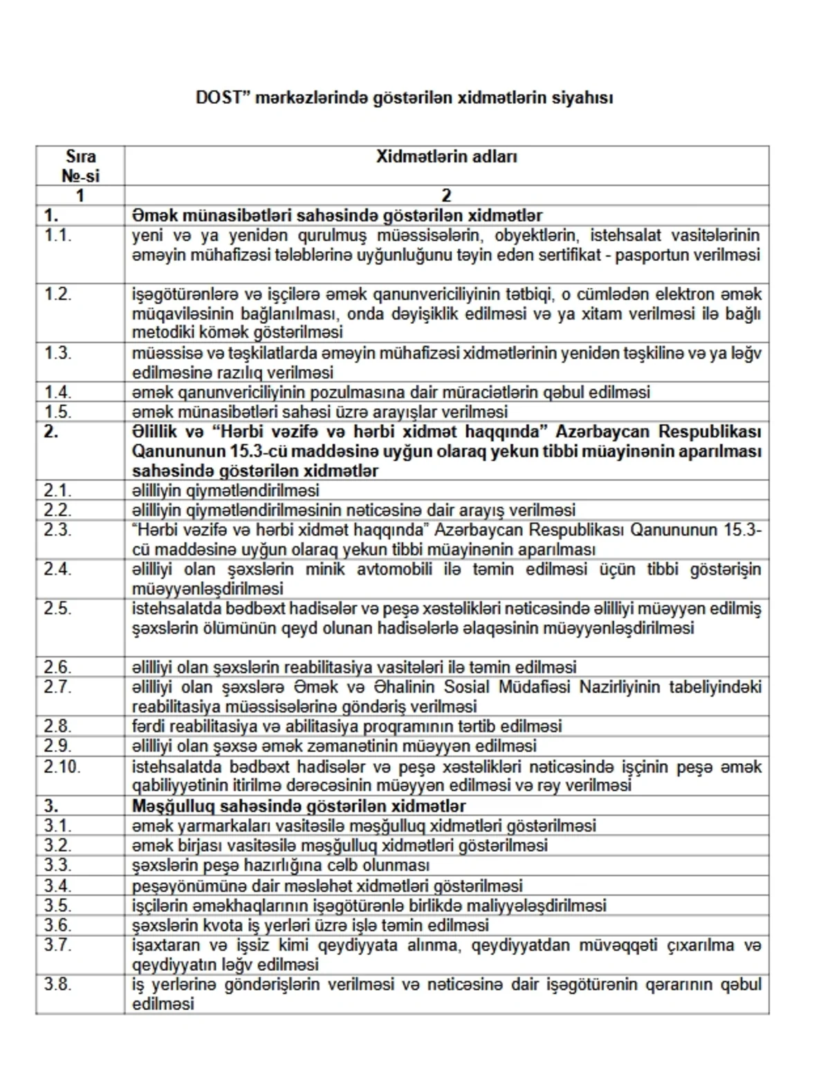 Azərbaycanda "DOST" mərkəzlərində göstərilən xidmətlərin siyahısı təsdiqlənib
