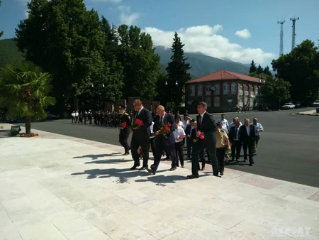 Tədbir iştirakçıları Ulu Öndər Heydər Əliyevin abidəsini ziyatət edib, əziz xatirəsinə gül dəstələri qoyublar.