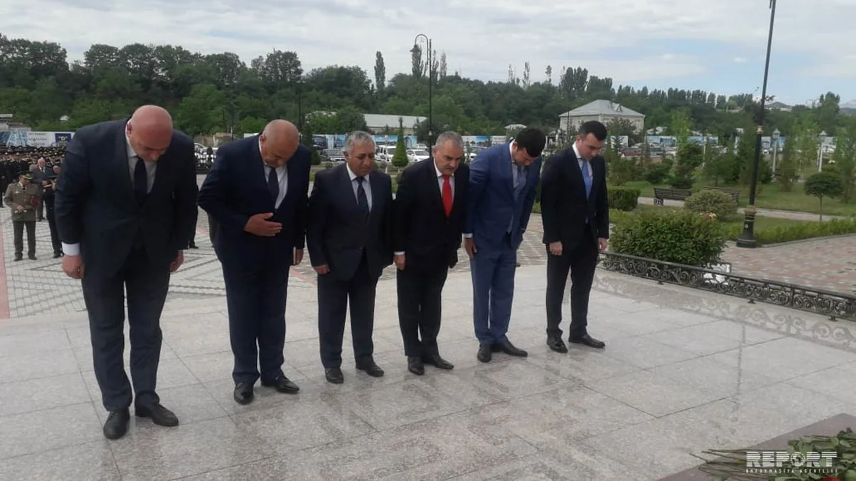Əvvəlcə tədbir iştirakçıları Ulu öndər Heydər Əliyevin Gəncənin Baş meydanında ucaldılan abidəsini ziyarət edib, önünə tər çiçəklər düzüblər. Daha sonra onlar Şəhidlər Xiyabanında olub, ötən il Gəncədə ictimai asayişi kobud şəkildə pozmaq cəhdinin qarşısının alınması zamanı şəhid olmuş polis polkovniki İlqar Balakişiyevin və polis polkovnik-leytenantı Səməd Abbasovun, habelə Azərbaycanın ərazi bütövlüyü uğrunda canından keçən igid oğulların məzarlarını ziyarət ediblər.