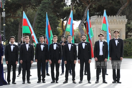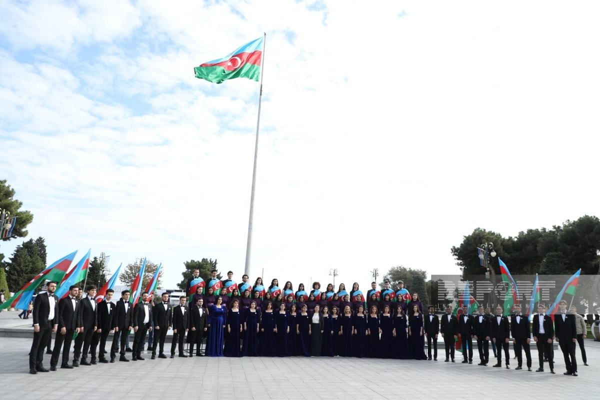 Əvvəlcə Azneft meydanında əməkdar müəllim Təranə Yusifovanın rəhbərliyi altında "Şuşam" kamera xoru və Azərbaycan Mədəniyyət və İncəsənət Universitetinin “Xəzər” xor kollektivi tərəfindən Dövlət himnini səsləndirilib.