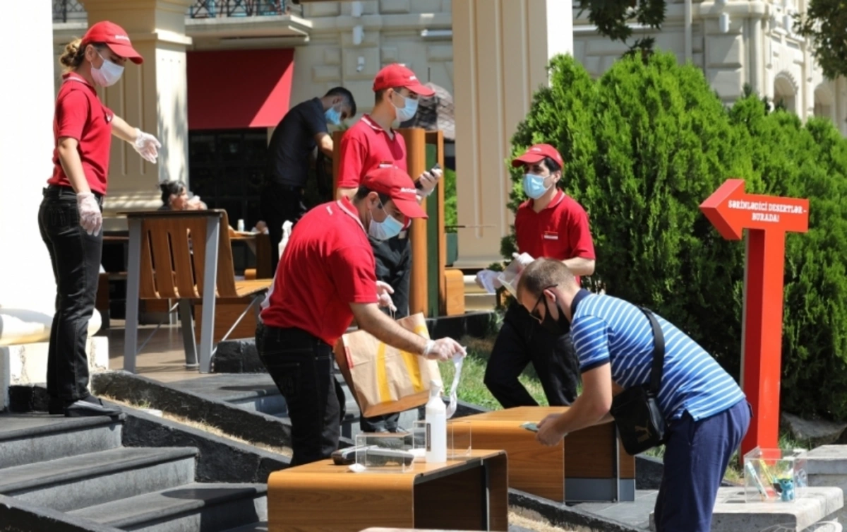 Nazirlər Kabineti yanında Operativ Qərargahın qərarına əsasən avqustun 18-dən etibarən Bakı şəhəri də daxil olmaqla 7 şəhər və 6 rayonda ictimai iaşə obyektlərində, eləcə də restoran, kafe, çay evləri və bu kimi digər məkanlarda müştərilərə açıq hava şəraitində xidmət göstərilməsinə icazə verilir. Qərara uyğun olaraq müştərilərə açıq hava sahəsində yerində xidmət saat 09:00-dan 22:00-dək (qəlyan avadanlıqlarından istifadə və hər bir masa arxasında 6 nəfərdən artıq toplaşmaq istisna olmaqla) həyata keçiriləcək.