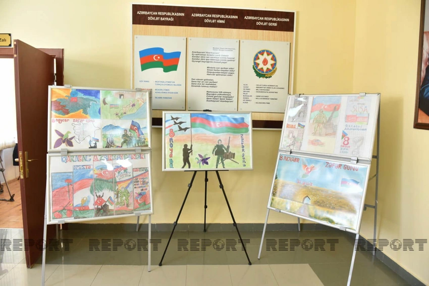 Qonaqlar ilk öncə məktəbin güşəsində şagirdlərin hazırladığı kompozisiya ilə tanış olublar.