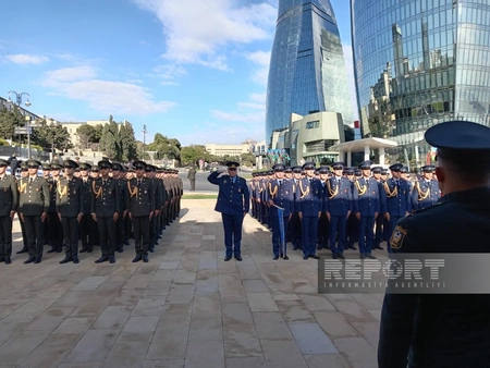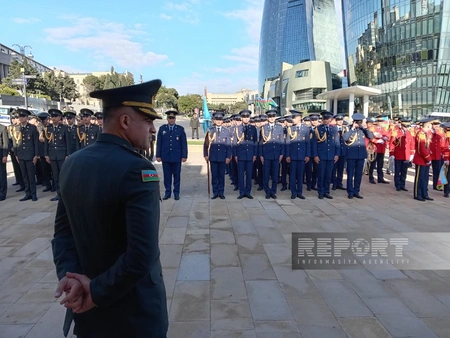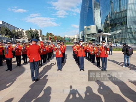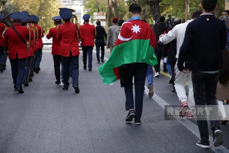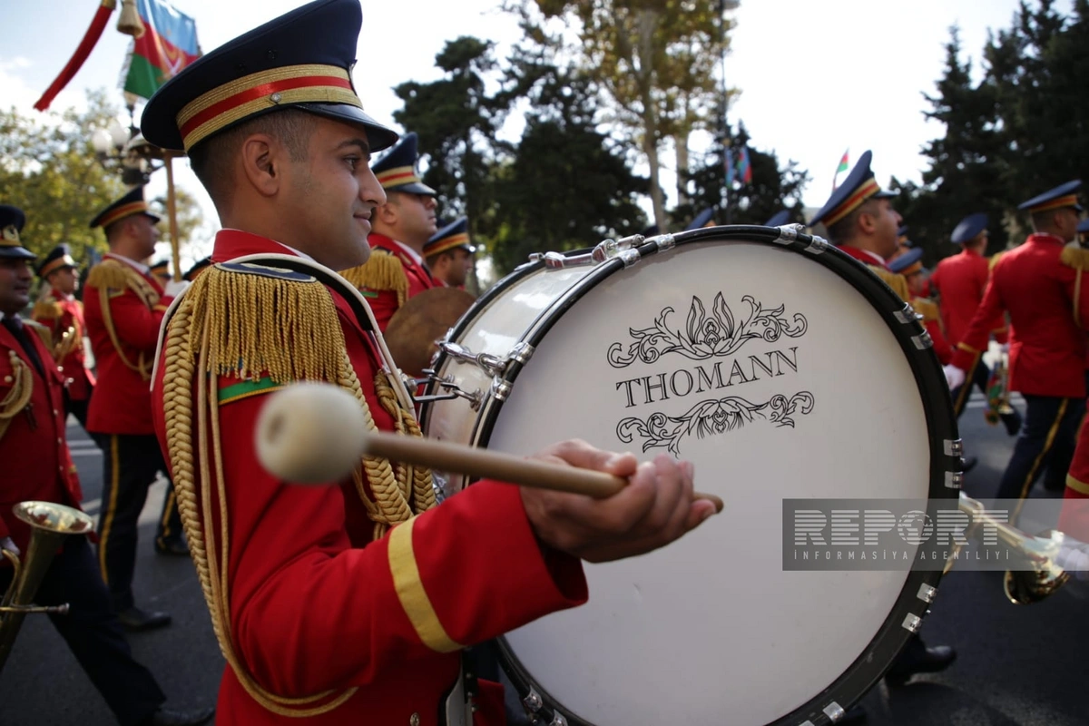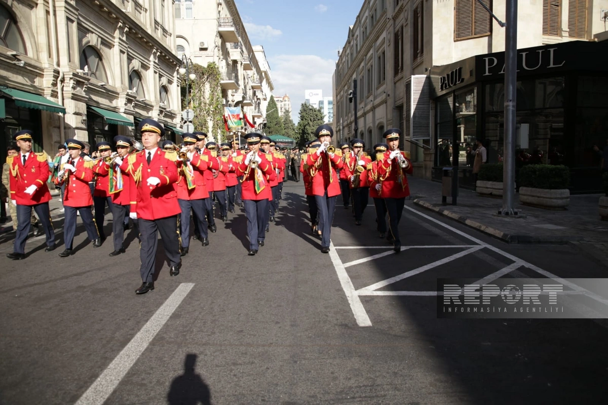 8 Noyabr - Zəfər Günü münasibətilə hərbi orkestrlərin müşayiəti ilə Bakıda hərbçilərin Zəfər yürüşləri başa çatıb.