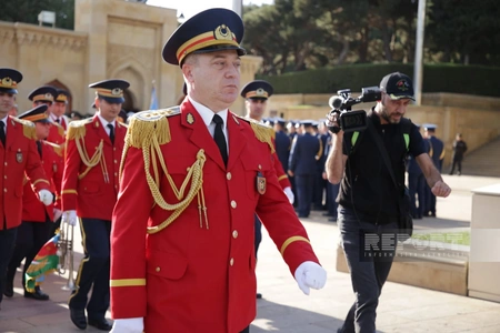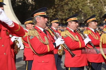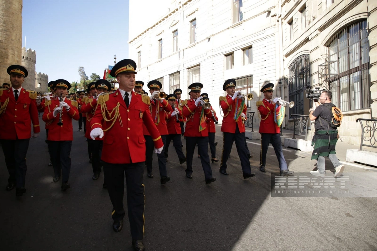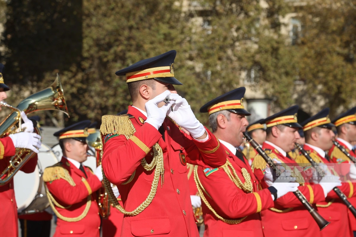 Sonra hərbi orkestrlər Azərbaycanın dövlət himnini səsləndirib.