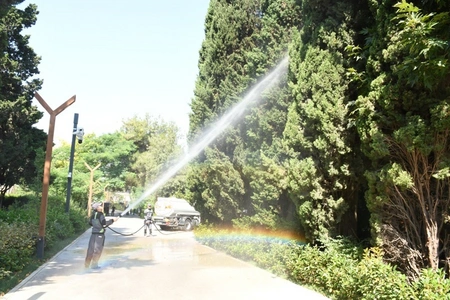 Eyni zamanda Bakı Şəhər Yaşıllaşdırma Təsərrüfatı Birliyi əməkdaşları da son vaxtlarda havaların kəskin isti keçməsi ilə əlaqədar yol və prospektlərin kənarlarındakı ağacların və yaşıllıqların yuyulması, onlara aqrotexniki qulluq göstərilməsini də həyata keçirib, qabaqlayıcı tədbirlər olaraq xəstə ağacları götürüb.