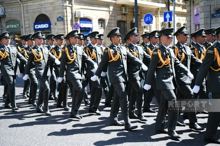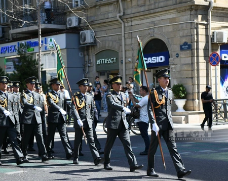 Bakıda hərbi orkestrlərin müşayiəti ilə yürüşlər keçirilir - VİDEO