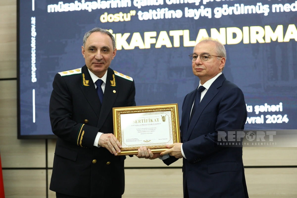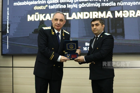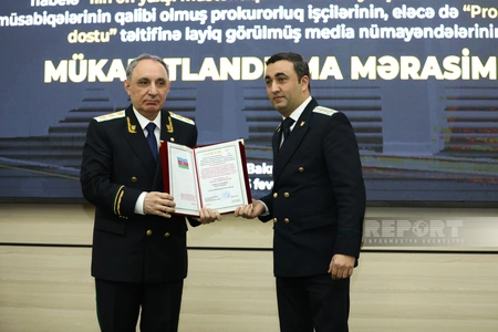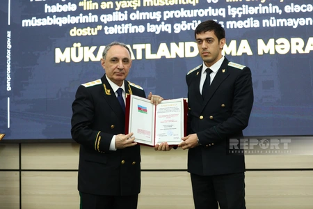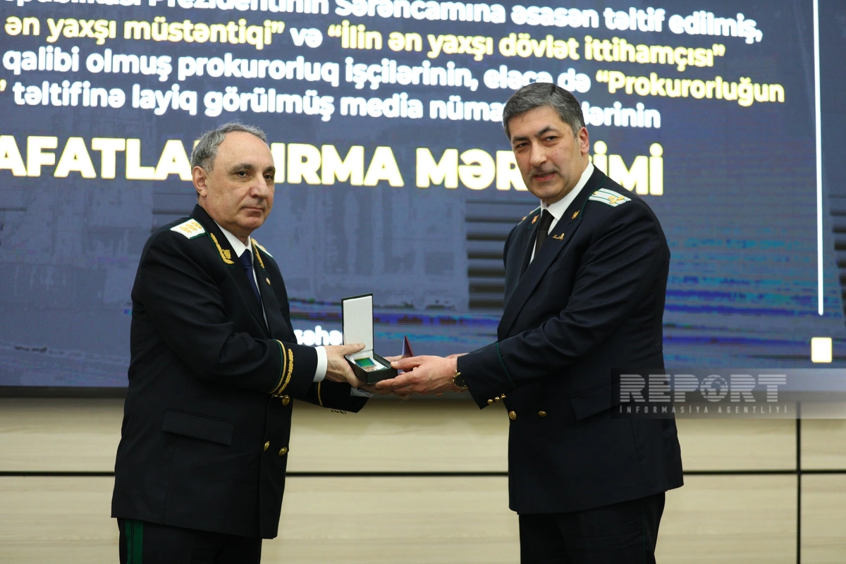 Baş Prokurorluqda “İlin ən yaxşı müstəntiqi” və “İlin ən yaxşı dövlət ittihamçısı” müsabiqələrinin qaliblərinin, eləcə də "Prokurorluğun dostu" təltifinə layiq görülmüş media nümayəndələrinin mükafatlandırma mərasimi keçirilib.