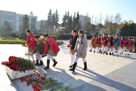 Tədbirdə iştirak edənlər ulu öndərə olan məhəbbətlərini ifadə edib, dahi şəxsiyyətin abidəsi önünə tər çiçəklər düzərək əziz xatirəsini ehtiramla yad ediblər.