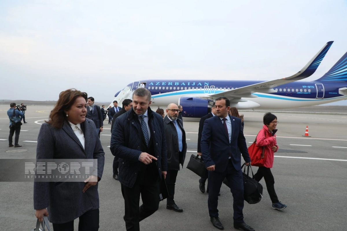 "Report"un Füzuliyə ezam olunmuş əməkdaşı xəbər verir ki, göyərtəsində qonaqların olduğu təyyarə Füzuli Beynəlxalq Hava Limanına enib.