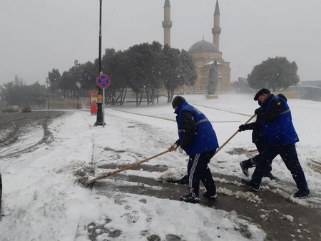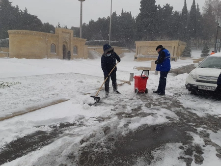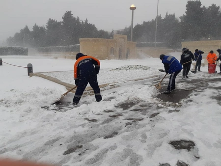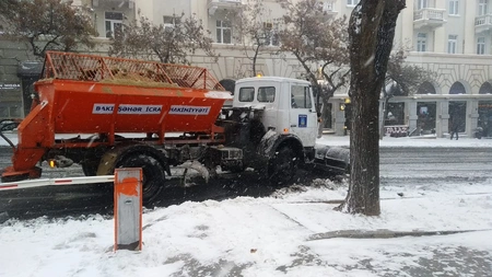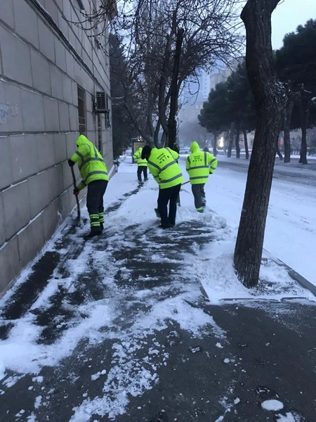Bütün bunlara baxmayaraq şəhərin kommunal strukturları gecədən etibarən şəhər üzrə qarın təmizlənməsi işlərinə başlayıb. Texnika vasitəsilə yollara duz və kimyəvi maddələr səpilib. Bu işlər gün ərzində xüsusi qrafiklə davam etdiriləcək”.