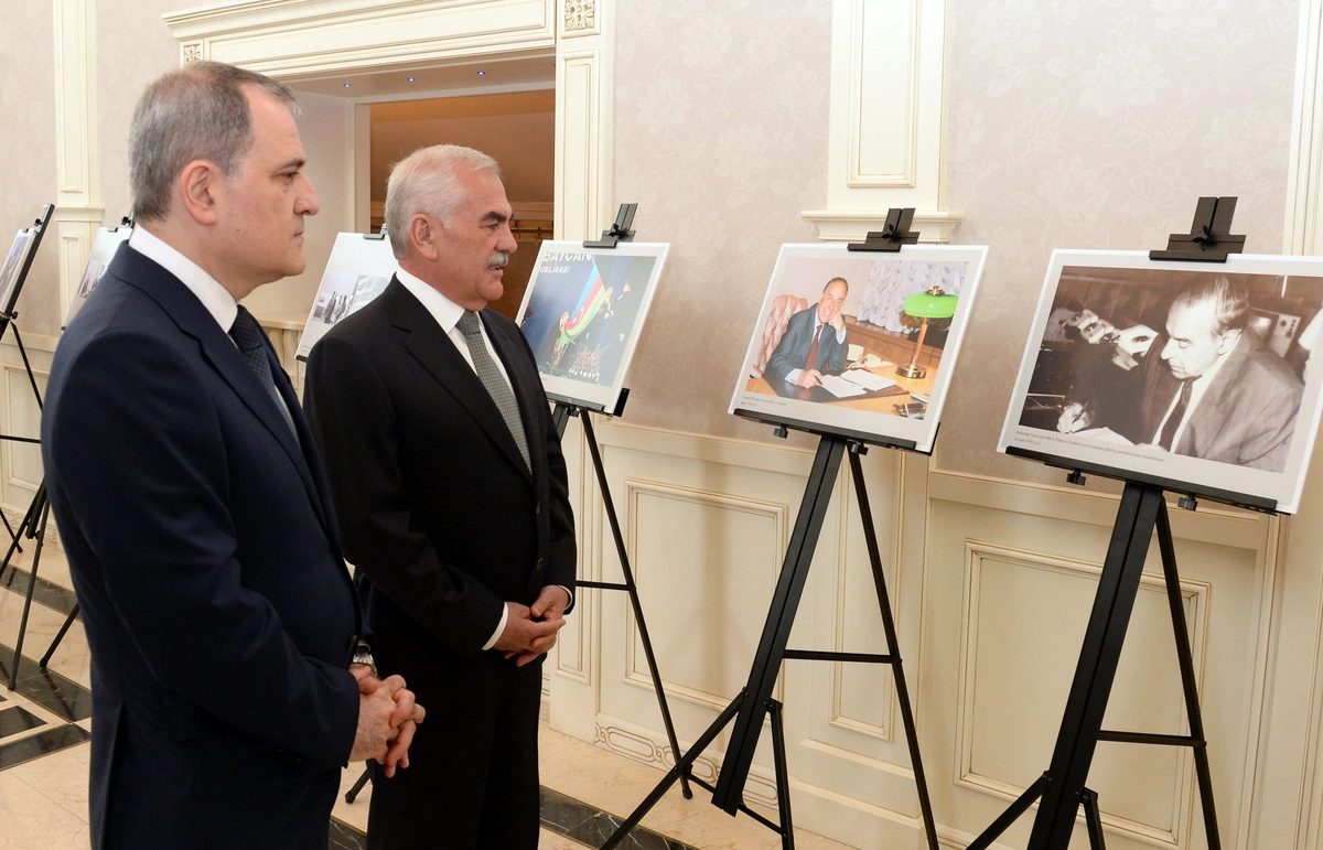 Daha sonra çıxış edən xarici işlər naziri Ceyhun Bayramov Ulu öndərin bütövlükdə müasir Azərbaycanın qurulmasında, onun müstəqilliyinin, iqtisadi-siyasi əsaslarının, dövlətçilik ənənələrinin möhkəmləndirilməsində və inkişafında əvəzsiz rolundan danışıb. Azərbaycan xalqının milli maraqlarına əsaslanan xarici siyasət kursunun hazırlanması və aparılmasının ulu öndər Heydər Əliyevin adı ilə bağlı olduğunu qeyd edib. Məhz ümummilli liderin hakimiyyətə qayıdışından sonra ölkəmizin həm ikitərəfli, həm də çoxtərəfli səviyyələrdə əməkdaşlıq əlaqələrinin qurulduğunu və inkişaf etdirildiyini bildirən nazir Ceyhun Bayramov, Azərbaycanın bugünkü xarici siyasət uğurlarının əsasında Ulu Öndər Heydər Əliyevin xarici siyasət konsepsiyasının durduğunu ifadə edib. Torpaqlarımızın işğaldan azad olunmasının Ulu Öndər Heydər Əliyevin ən böyük arzularından biri olduğunu qeyd edən nazir, bu missiyanın Heydər Əliyev irsinin layiqli davamçısı, Azərbaycan Respublikasının Prezidenti, Müzəffər Ali Baş Komandan İlham Əliyev tərəfindən yerinə yetirildiyini, bugün üçrəngli bayrağımızın işğaldan azad olunmuş torpaqlarımızda dalğalandığını vurğulayıb. Azərbaycanın 44 günlük Vətən müharibəsində şanlı qələbəsi məhz Ümummilli Lider Heydər Əliyevin ölkəyə yenidən rəhbərliyə qayıtdığı vaxtdan başlanılan genişmiqyaslı dövlətçilik, quruculuq, iqtisadiyyatın inkişaf etdirilməsi, ordunun gücləndirilməsi işlərindən başladığını qeyd edib.