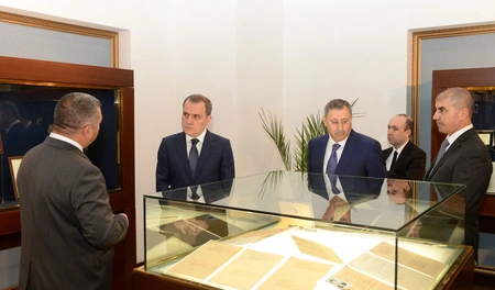 Daha sonra C.Bayramov və Naxçıvan Muxtar Respublikası Ali Məclisinin sədri Vasif Talıbov ulu öndər Heydər Əliyevə həsr olunan sərgi ilə tanış olublar.
