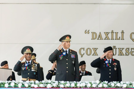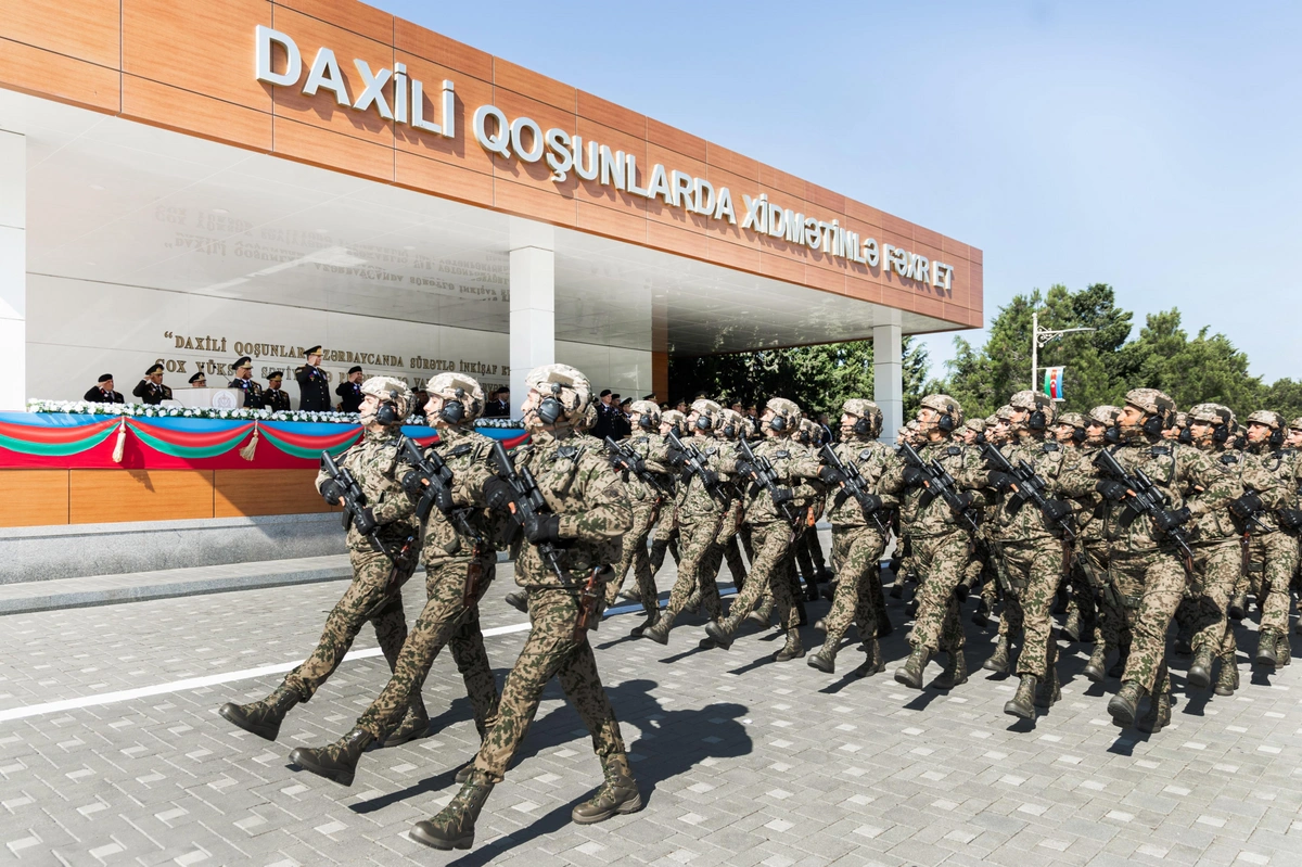 Nazir Vilayət Eyvazov Daxili İşlər Nazirliyinin əsas struktur qurumlarından olan Daxili Qoşunların yarandığı gündən şərəfli xidmət yolu keçdiyini vurğulayıb, Azərbaycanın ərazi bütövlüyü uğrunda gedən döyüşlərdə, ölkədə sabitliyin, ictimai təhlükəsizliyin təmin olunmasında onun mühüm rol oynadığını diqqətə çatdırıb. O, Daxili Qoşunların döyüş hazırlığının yüksəldilməsinin Azərbaycan Respublikasının Prezidenti, Silahlı Qüvvələrin Ali Baş Komandanı cənab İlham Əliyev tərəfindən hər zaman nəzarətdə saxlanıldığını, müasir silah və texnika ilə təminatı, şəxsi heyətin sosial müdafiəsinin gücləndirilməsi sahəsində bir çox vacib qərarların qəbul edildiyini vurğulayıb, xüsusi diqqət və qayğının nəticəsi olaraq Daxili Qoşunların qarşıya qoyulan istənilən döyüş tapşırığını layiqincə yerinə yetirməyə qadir olduğunu bildirib.