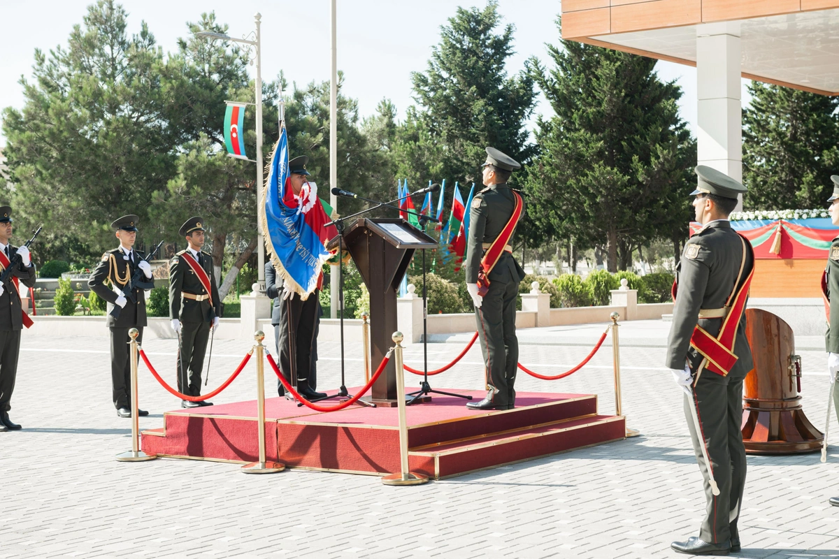 Kursant Çingiz Cəfərli onlara göstərilən diqqət və qayğıya görə ölkə başçısına, DİN rəhbərliyinə və Hərbi İnstitutun zabit-müəllim heyətinə minnətdarlığını çatdırıb, gələcəkdə peşəkar zabit olacaqlarını, Vətən, dövlət və xalq qarşısında vəzifələrini layiqincə yerinə yetirəcəklərini, hərbçi şərəfini hər zaman uca tutacaqlarını bildirib. Sonra Döyüş Bayrağı üçüncü kursun kursantlarına təhvil verilib. Gənc zabit Ç.Cəfərli “Yaş kötüyü”nə rəmzi xatirə lövhəsini vurub.