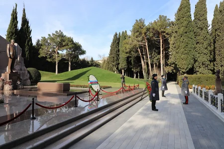 Daha sonra Şəhidlər xiyabanında Azərbaycanın müstəqilliyi və ərazi bütövlüyü uğrunda canlarından keçmiş Vətən övladlarının unudulmaz xatirəsi yad edilib, "Əbədi məşəl" abidə kompleksinin önünə əklil qoyulub.