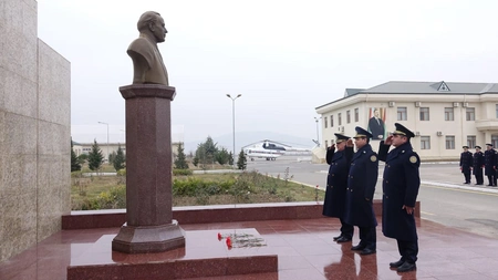 Nazirlikdən "Report"a verilən məlumata görə, Aviasiya dəstəsinin şəxsi heyəti Azərbaycan xalqının ümummilli lideri Heydər Əliyevin büstü önünə gül-çiçək dəstələri qoyaraq Ulu Öndərin əziz xatirəsini ehtiramla yad ediblər.
