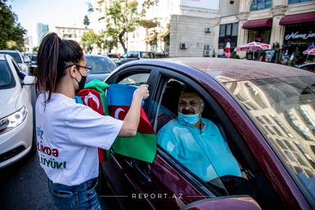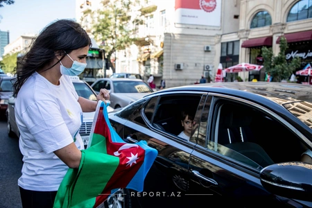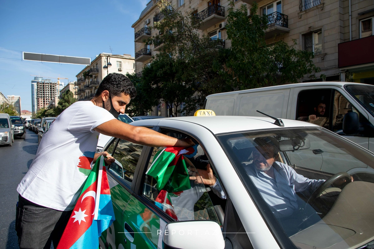 "Gənclər Azərbaycan vətəndaşlarına, əhaliyə bayraq paylayırlar. Hamıya bəllidir ki, gərgin döyüşlər gedir. Bayraqların eyvanlardan asılması, maşınlarda çox olması xalqımızın birliyidir, bayrağa və vətənə olan sevginin rəmzidir. Gənclər şəhərin 3 nöqtəsində, dayanacaqlarda maşınlara bayraqlar paylayırlar ki, bu gün şəhərimizdə daha çox bayraq olsun, birliyimiz daha da möhkəmlənsin".
