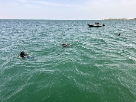 Bildirilib ki, tibb personalı tərəfindən müayinədən keçmiş dalğıclar tapşırıqları icra etməyə buraxılıb. Heyətin işarələrlə xəbərləşmə və idarəetmə bacarıqları qənaətbəxş hesab edilib. Cari mərhələdə sualtı hərəkət vasitələri və digər axtarış üsullarından istifadə edərək batmış obyektin axtarışı, tapılması və su üzərinə qaldırılması üzrə praktiki tapşırıqlar yerinə yetirilib.