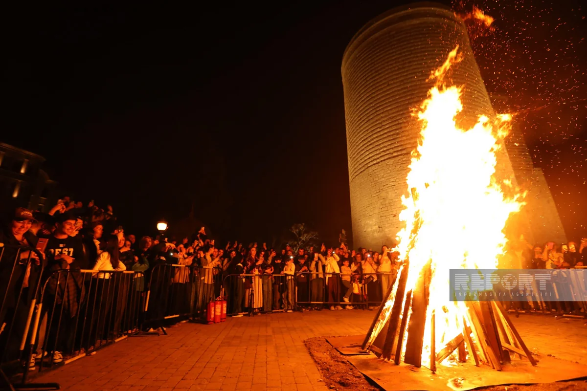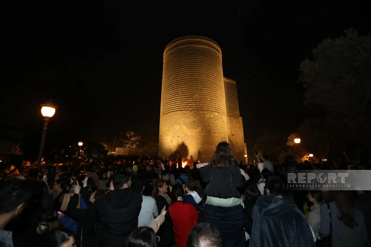 "Report" xəbər verir ki, şəhər sakinləri, xarici qonaqlar Qız Qalasının ətrafında qalanan bayram tonqalına yığışıblar.