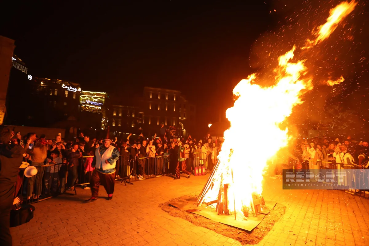 İçərişəhərdə təntənəli bayram tonqalı qalanıb.